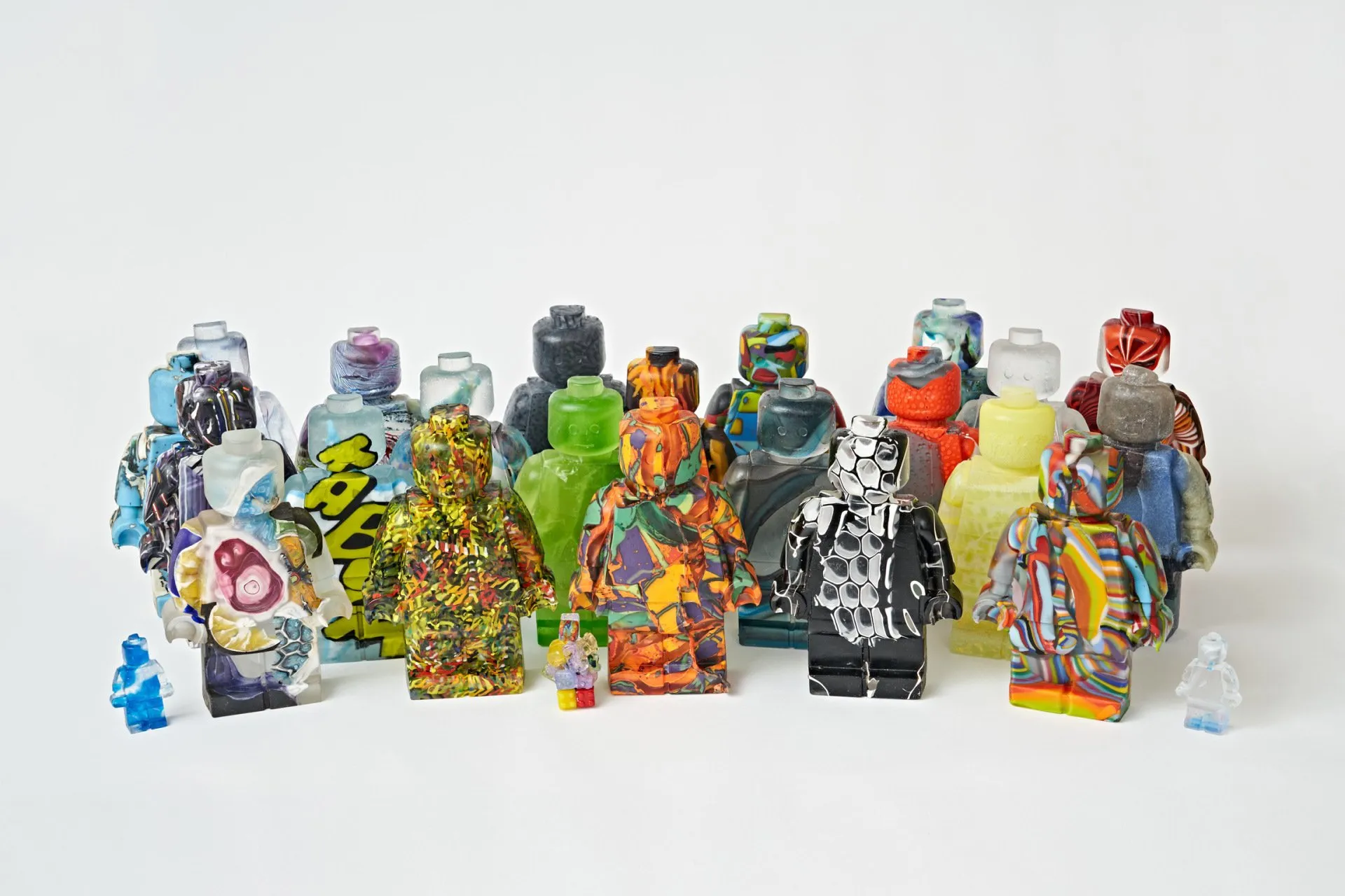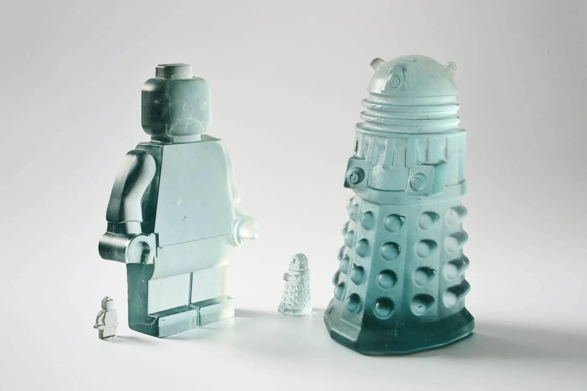 Nazvan Recikliranje narativa, višestruko nagrađivani konceptualni rad britanske umetnice Hane Gibson (Hannah Gibson), dobro pokazuje kako doslednost u pogledu umetničkog oblika i tehnike omogućava duboke urone u materijalnost stakla i ishodi inovativnim, često i do sada nemogućim skulpturama. Držeći se oblika robota, inspirisanog LEGO mini-figurom, i tehnike livenja, Hana već deset godina istražuje fizička, hemijska, estetska i kulturna svojstva stakla, te njihov uticaj na životnu sredinu. Do sada je napravila preko 2500 skulptura. Sve su unikatne i snažno apeluju na savest publike.